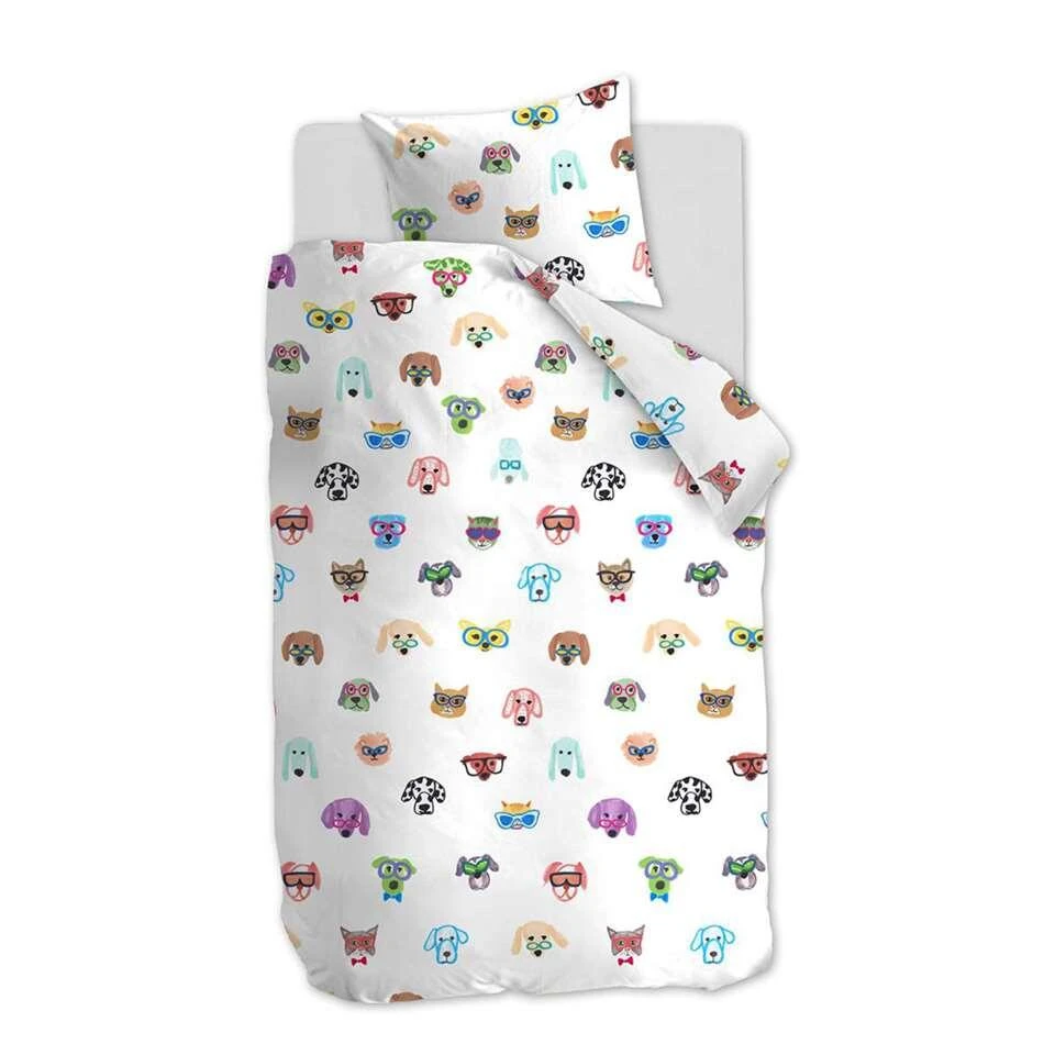 Dekbedovertrek In Your Face van Ambiante heeft een opdruk van grappige dieren in leuke en vrolijke kleuren. De achtergrond is wit. Met dit dekbedovertrek creëer je moeiteloos een gezellig en vooral vrolijk sfeertje in de slaapkamer. Dit dekbedovertrek is gemaakt van 100% katoen en voelt fijn en zacht aan. Het dekbedovertrek heeft over de gehele breedte aan beide zijden een dubbele instopstrook waardoor het dekbedovertrek gemakkelijk onder het matras gestopt kan worden en koude voeten worden voorkomen. Het dekbedovertrek heeft aan de voor- en achterzijde hetzelfde dessin. Het overtrek kan gewassen worden tot 60 graden, is geschikt voor de wasdroger en kan gestreken worden. Dankzij de hoogwaardige kwaliteit blijft dit overtrek ook na het wassen mooi van vorm en kleur. Met bijpassende kussensloop.