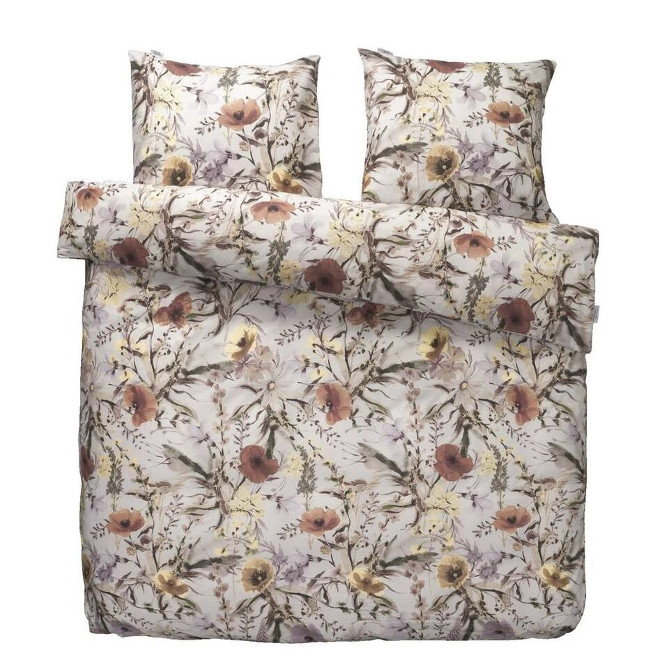 Een goed begin van de dag; wakker worden onder het dekbedovertrek Pretty Foral van Ariadne at Home. Het overtrek heeft een zomerse print van aquarelgeschilderde bloemen in verschillende kleuren. Zachte nude tinten, lila, oker, groentinten en terra geven het boeket kleur. Tegen de gebroken witte ondergrond komen de bloemen prachtig tot hun recht. Zowel de voor- als achterzijde van het overtrek zijn hetzelfde.