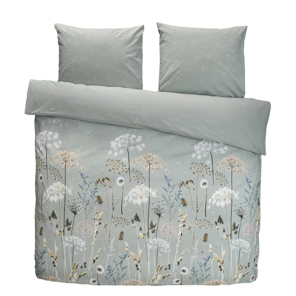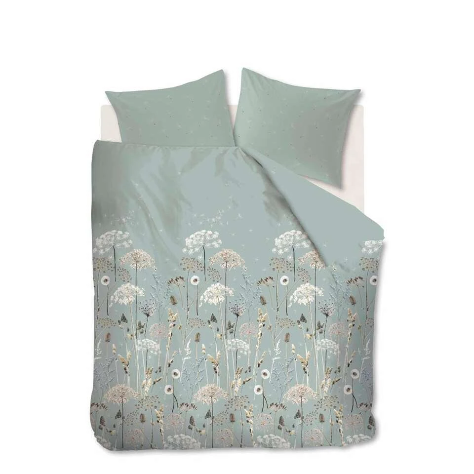 Ariadne at Home dekbedovertrek Wind wordt gesierd door verschillende gedroogde veldbloemen in diverse natureltinten tegen een zachtgroene achtergrond. Aan de bovenkant van het overtrek dwarrelen de pluisjes van een paardenbloem, waardoor het overtrek een luchtige, frisse uitstraling heeft. Het dekbedovertrek is gemaakt van 100% katoen. Katoen is een natuurlijk product dat goed ademt en vocht opneemt. De totale afmeting van dekbedovertrek Wind is 200×200/220 cm. Het overtrek kan gewassen worden tot 60 graden, is geschikt voor de wasdroger en kan gestreken worden.
