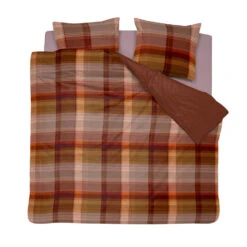 Het Ponte dekbedovertrek van Cinderella heeft een tijdloze ruitenprint uitgevoerd in warme kleuren, van aarderood tot okergeel waarmee je warmte en gezelligheid creëert in de slaapkamer. Het overtrek heeft een double-face ontwerp met op de achterzijde een effen print met een subtiel effect van een ribstructuur.