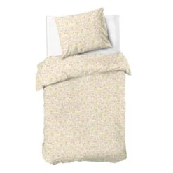 Dit dekbedovertrek met bloemen is uitgevoerd in trendy pastel. De kleine bloemen in de pastelkleuren zachtgeel, lichtroze en paars zijn een perfect match. Het duurzame dekbedovertrek is een mix van maar liefst 70% gerecycled katoen en 30% virgin BCI-katoen.