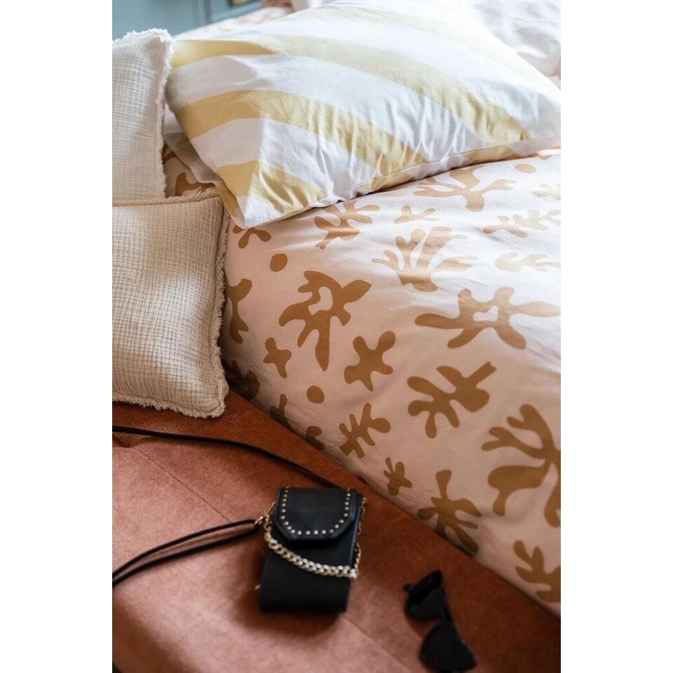 De kussensloopjes hebben een diagonale streep aan beide kanten in een nude kleur. De combinatie is unexpected maar dat maakt het alleen maar meer fashionable! En het Dindi labeltje rechtsonder is een daily reminder zodat jij weet; we’re always there for you! Doordat dit amazing overtrek is gemaakt van 70% gerecycled katoen, denk jij samen met ons aan het environment!
