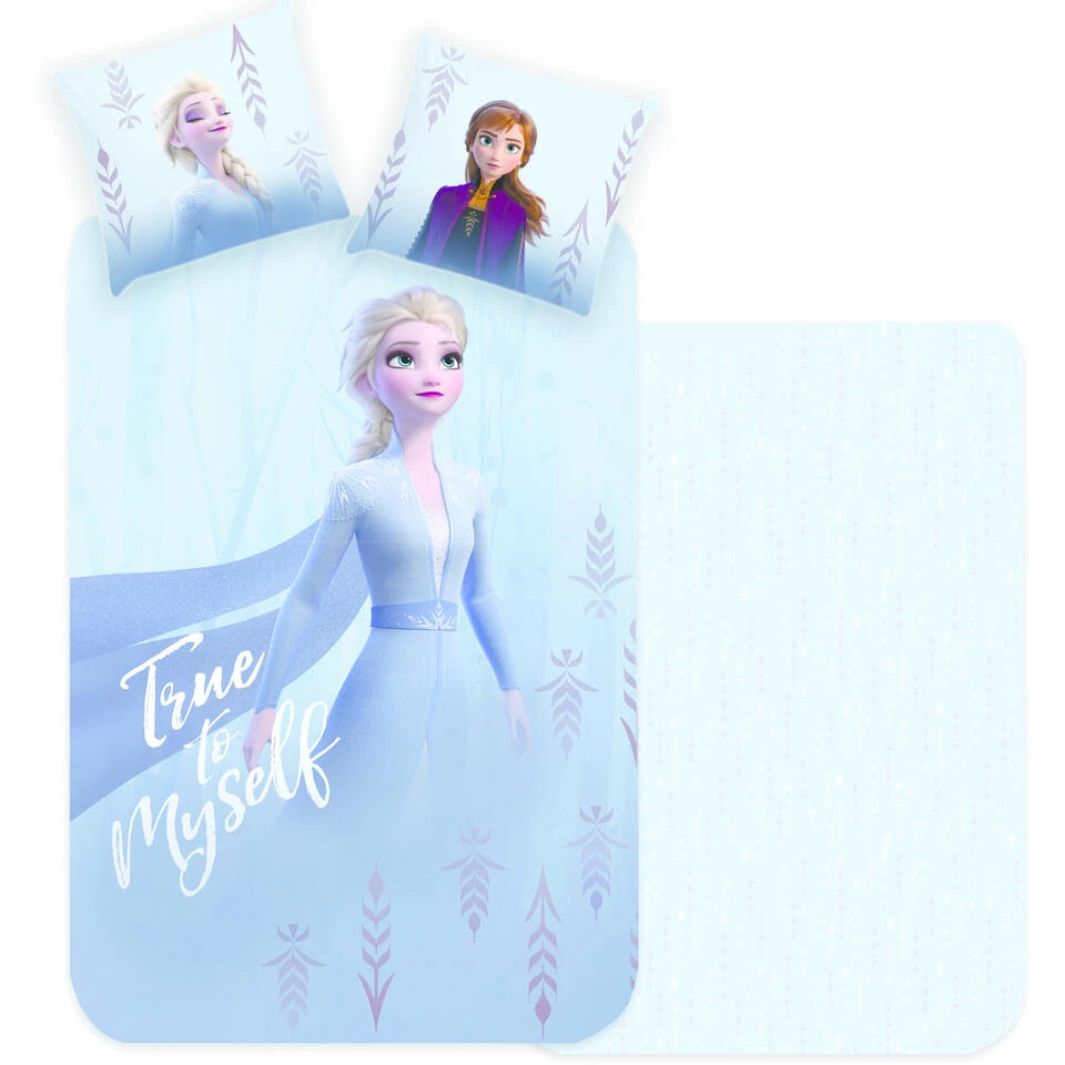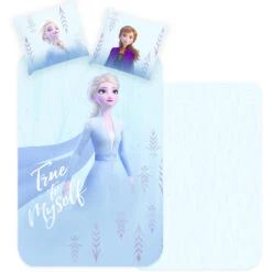Disney Frozen Dekbedovertrek, True to Myself. Mooi katoenen dekbedovertrek van Frozen. Elsa zorgt voor een echte blikvanger op dit dekbedovertrek. De set wordt compleet gemaakt door het extra grote kussensloop. Zowel de overtrek als het kussensloop zijn dubbelzijdig bedrukt, wat leuke opties geeft bij het opmaken van het bed. De kussensloop is voorzien van een afbeelding van Elsa aan de ene kant en van haar zus Anna aan de ene kant. Een waanzinnig cadeau-idee voor elke Frozen fan!