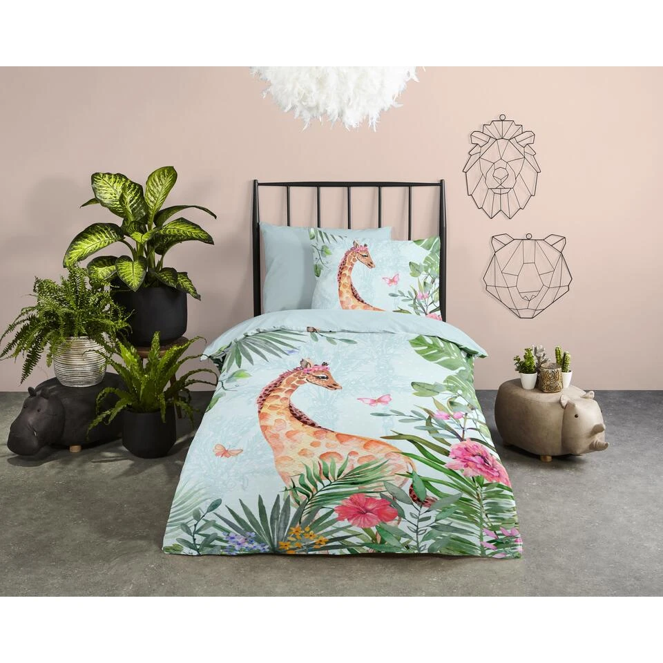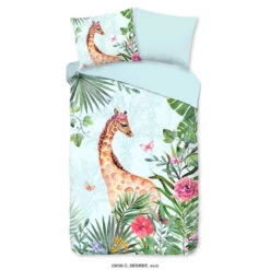 Dekbedovertrek “Desiree” van Good Morning met giraf, in de kleur “Aqua” is gemaakt van 100% Cotton. Deze kwaliteit is ademend, vocht absorberend en voelt zacht en soepel aan.
