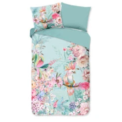 Dekbedovertrek “Emma” van Good Morning met tropische print, in de kleur “Aqua” is gemaakt van 100% Cotton. Deze kwaliteit is ademend, vocht absorberend en voelt zacht en soepel aan.