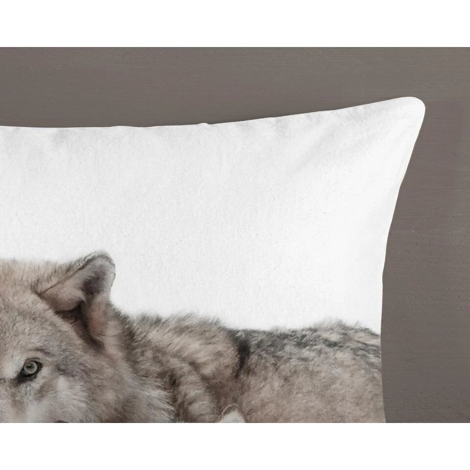 Dekbedovertrek “Fera” van Good Morning met wolven in de sneeuw, in de kleur “Zand” is gemaakt van 100% geruwde 100% Cotton/ Flannel. Deze warme, zachte stof is zeer geschikt voor de wintermaanden, ademend en vocht absorberend.