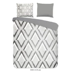 Deze set bestaat uit 1 dekbedovertrek met instopstrook (20 cm) van 240×240 cm en 2 kussenslopen van 60×70 cm.