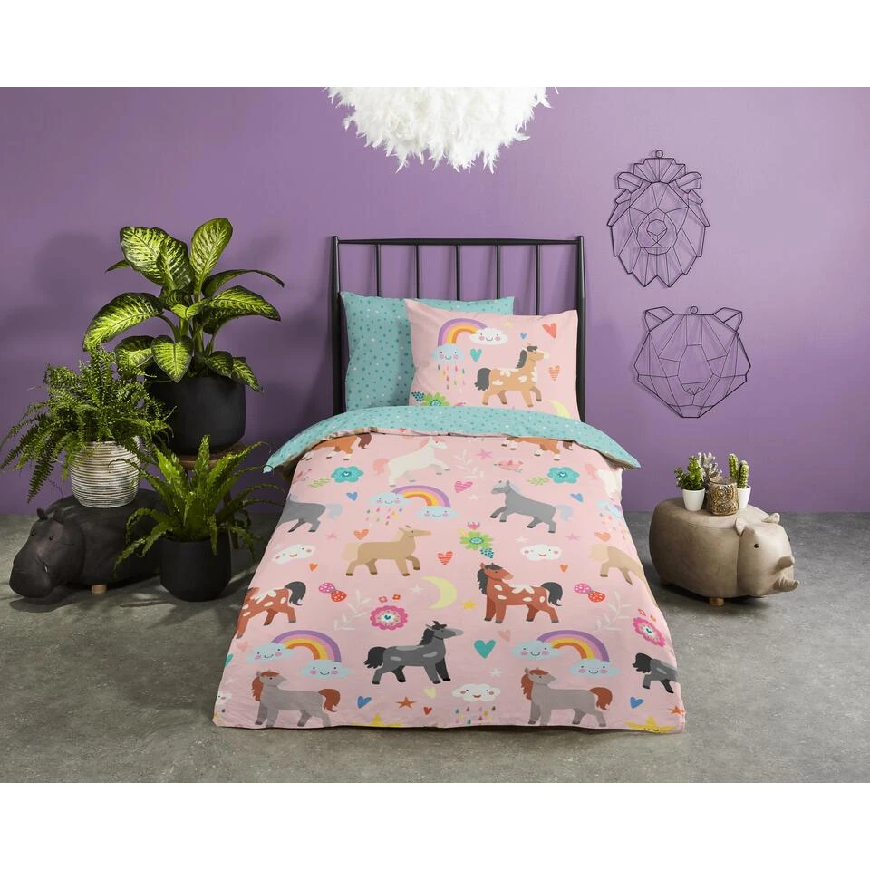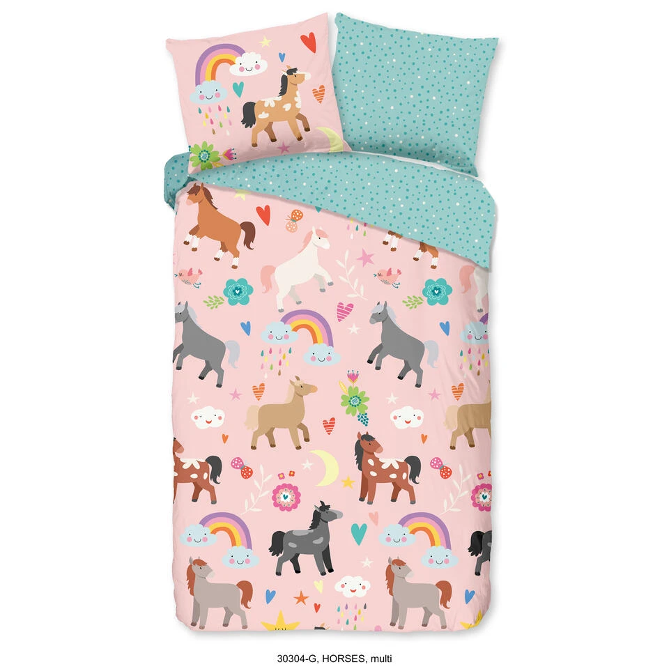 Good Morning Dekbedovertrek “Horses” – Multi – (140×220 Cm)