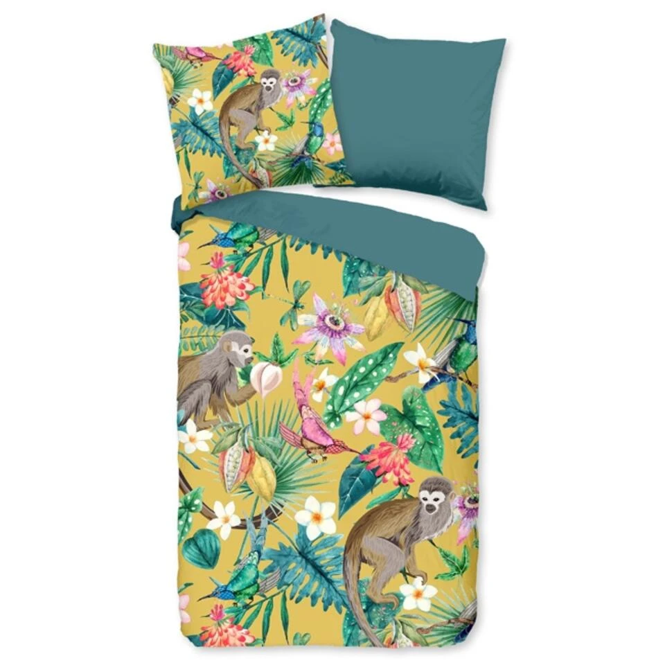 Dekbedovertrek “Meet” van Good Morning met jungle print, in de kleur “Oker” is gemaakt van 100% Cotton. Deze kwaliteit is ademend, vocht absorberend en voelt zacht en soepel aan.