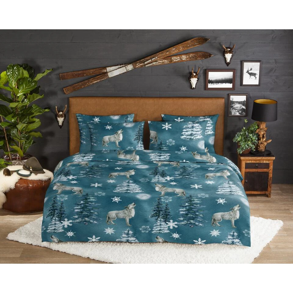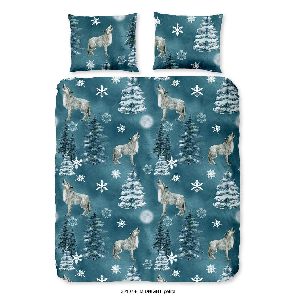 Dekbedovertrek “Midnight” van Good Morning met wolven, in de kleur “Petrol” is gemaakt van 100% geruwde 100% Cotton/ Flannel. Deze warme, zachte stof is zeer geschikt voor de wintermaanden, ademend en vocht absorberend.