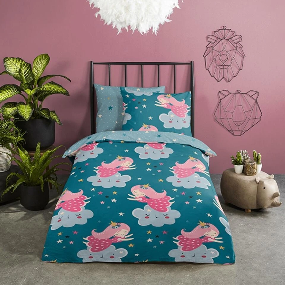 Dekbedovertrek “Princesse” van Good Morning met sterren, in de kleur “Petrol” is gemaakt van 100% Cotton. Deze kwaliteit is ademend, vocht absorberend en voelt zacht en soepel aan.