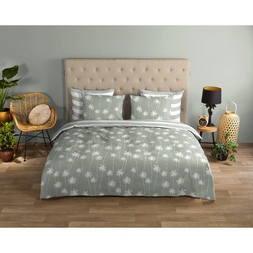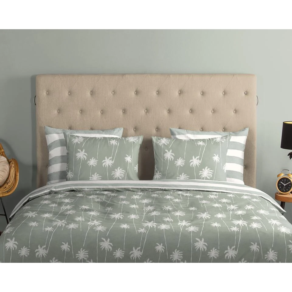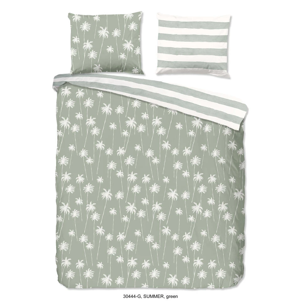 Dekbedovertrek “Summer” van Good Morning met palmbomen, in de kleur “Groen” is gemaakt van 100% Cotton. Deze kwaliteit is ademend, vocht absorberend en voelt zacht en soepel aan.