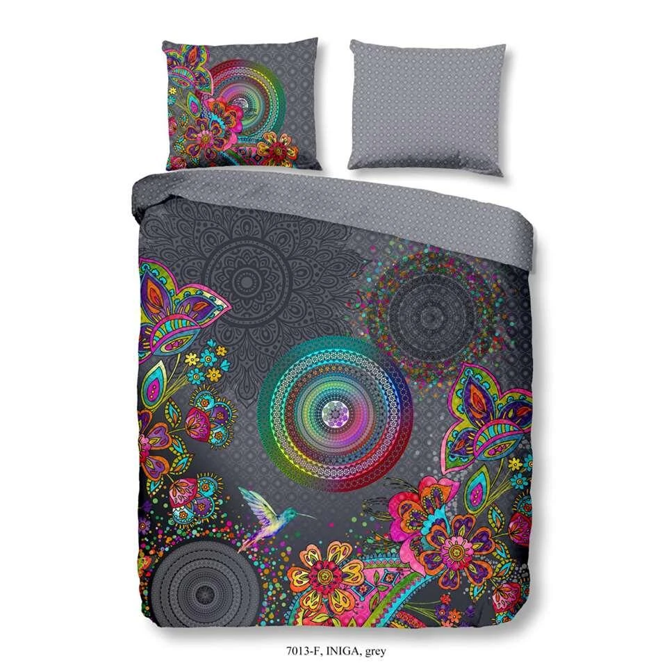 Dekbedovertrek Iniga is bedrukt met verschillende mandala’s, bloemen en een vogel. De achterzijde van dit dekbedovertrek is bedrukt met een klein bijpassend printje. Dekbedovertrek Iniga is gemaakt van 100% katoen-flanel. Het dekbedovertrek heeft een instopstrook over de gehele breedte aan beide zijden. Het dekbedovertrek is inclusief instopstrook 240 cm lang.