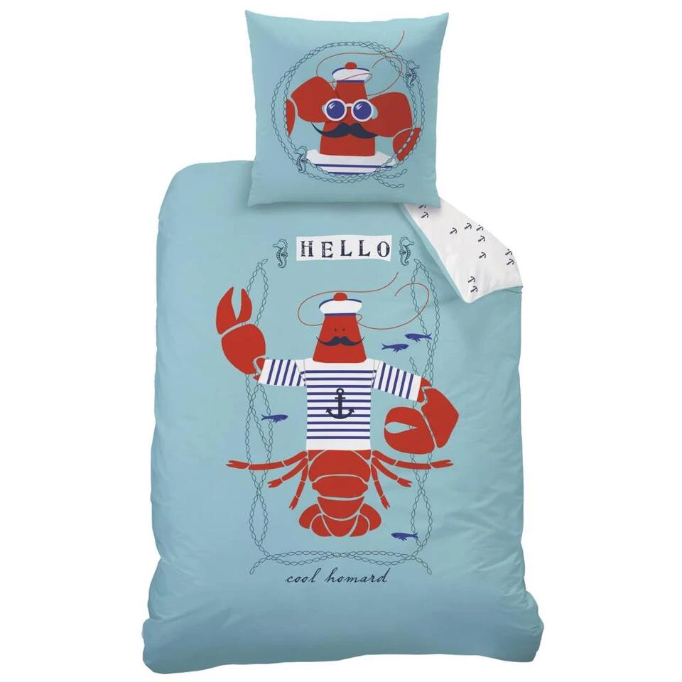 Matt & Rose Dekbedovertrek Omar. Dit leuke dekbedovertrek is voor jonge matrozen een echte smaakmaker in de slaapkamer. De coole kreeft is omgeven door zeesymbolen zoals ankers, zeepaardjes en vissen. Leef zelf het leven onder water en kruip ’s nachts lekker onder de golven. Met een aankoop van Matt & Rose luxe slaaptextiel kunt u aan op kwaliteit en comfort.