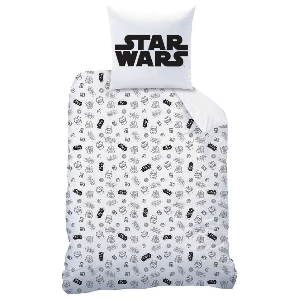 Star Wars Dekbedovertrek, Troup. Een geweldig eenpersoons dekbedovertrek van Star Wars. Naast het welbekende logo zijn tevens enkele iconische personages en ruimteschepen uit deze films te zien. Jabba de Hut, Darth Vader en een Millenium Falcon zijn er maar een paar van. Kan jij de rest herkennen? Zowel het overtrek als de kussensloop zijn tweezijdig bedrukt, waardoor je meerdere mogelijkheden voor opmaken hebt. Een fantastisch collectors-item voor een Star Wars fan en daarom een uitstekend cadeau om te geven voor een verjaardag of de feestdagen.